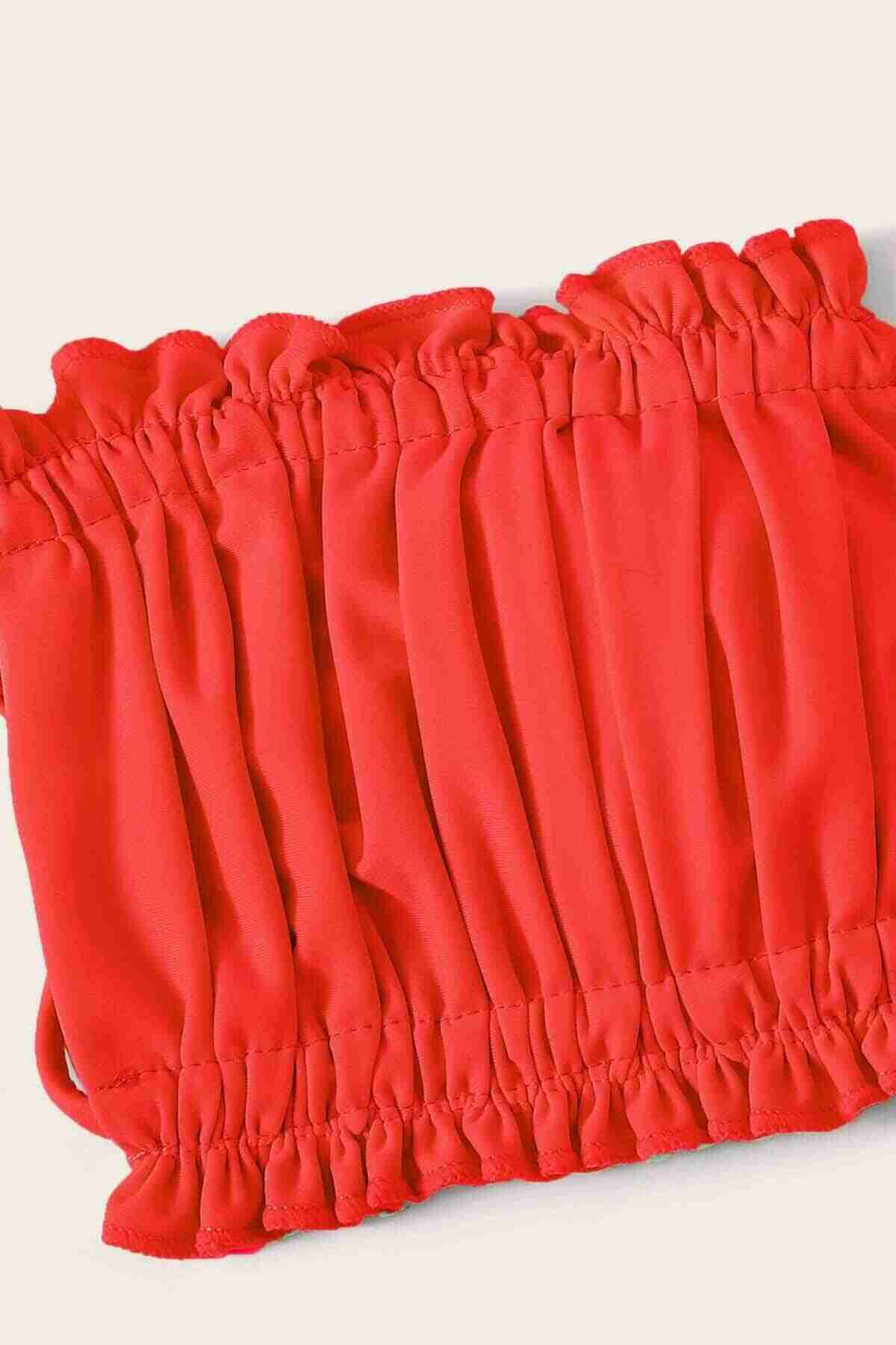 Angelsin Brezilya Model Büzgülü Bağlamalı Bikini üstü Kırmızı - MS41648-Kırmızı