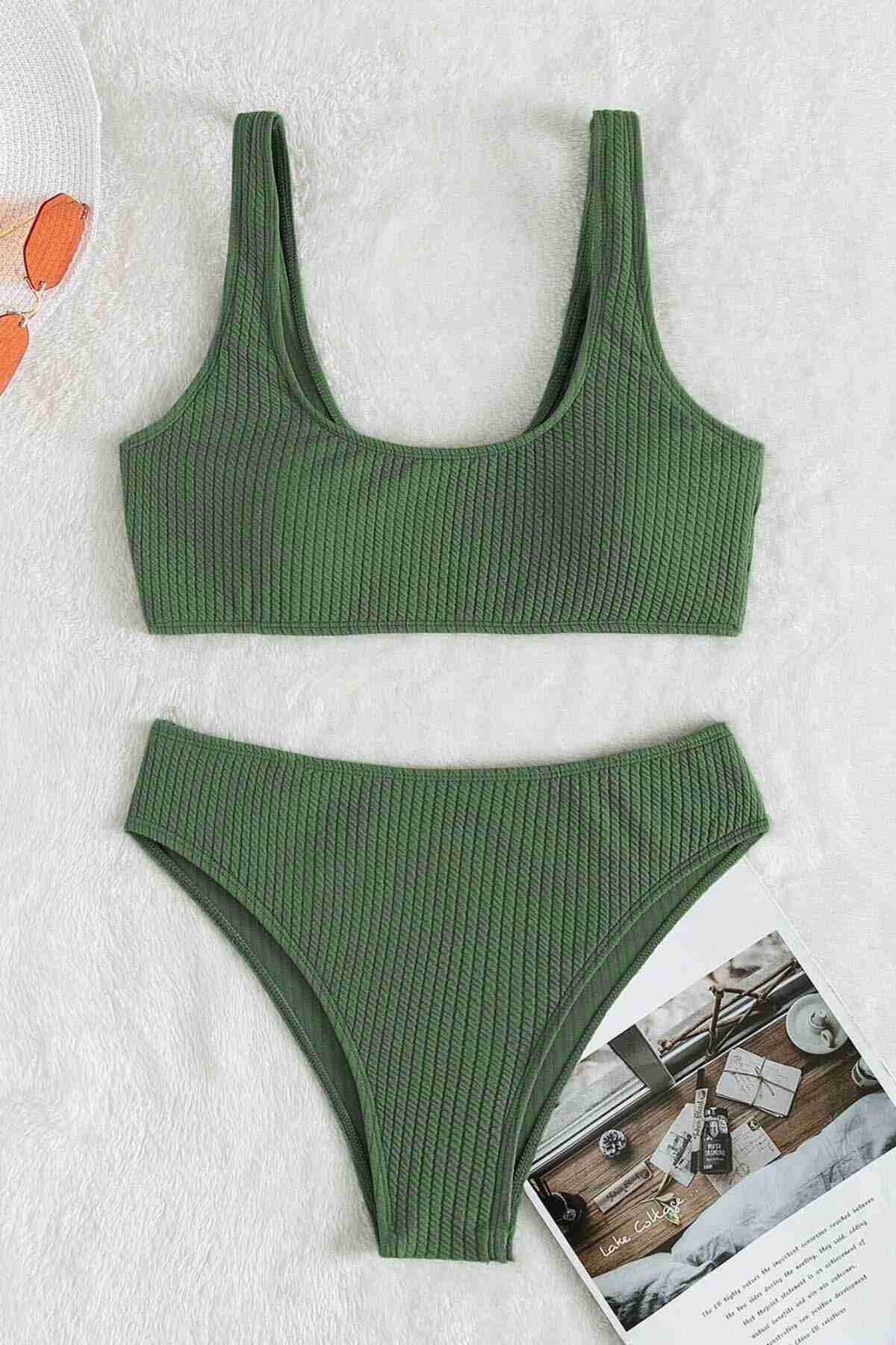 Angelsin Özel Fitilli Kumaş Tankini Bikini Üstü Yeşil - MS41699-Yeşil