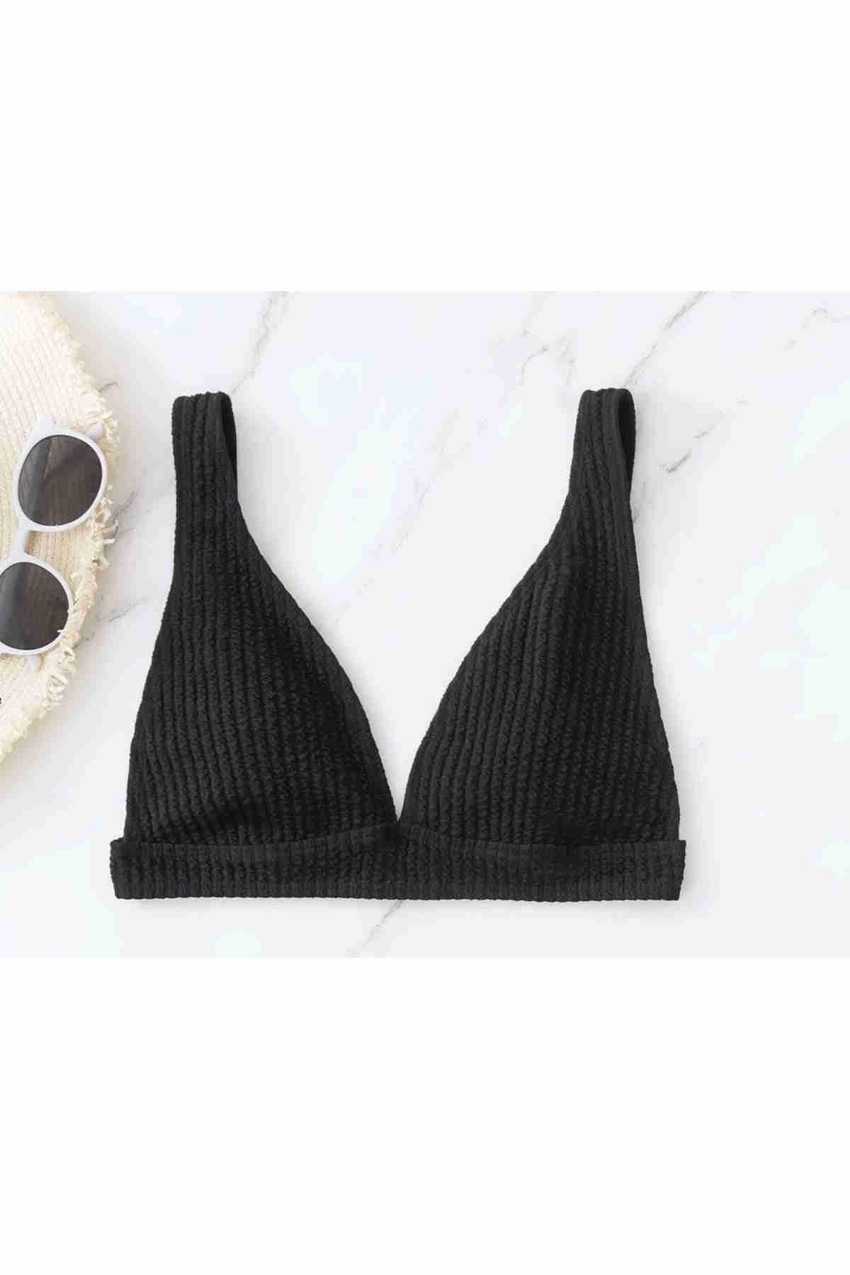 Angelsin Özel Kumaş Bikini Üstü Siyah - MS41779-Siyah