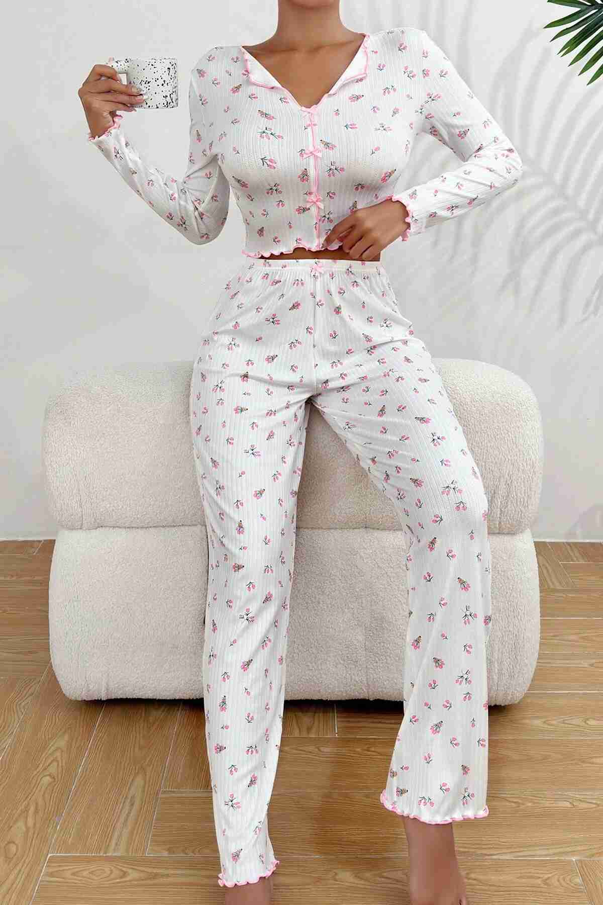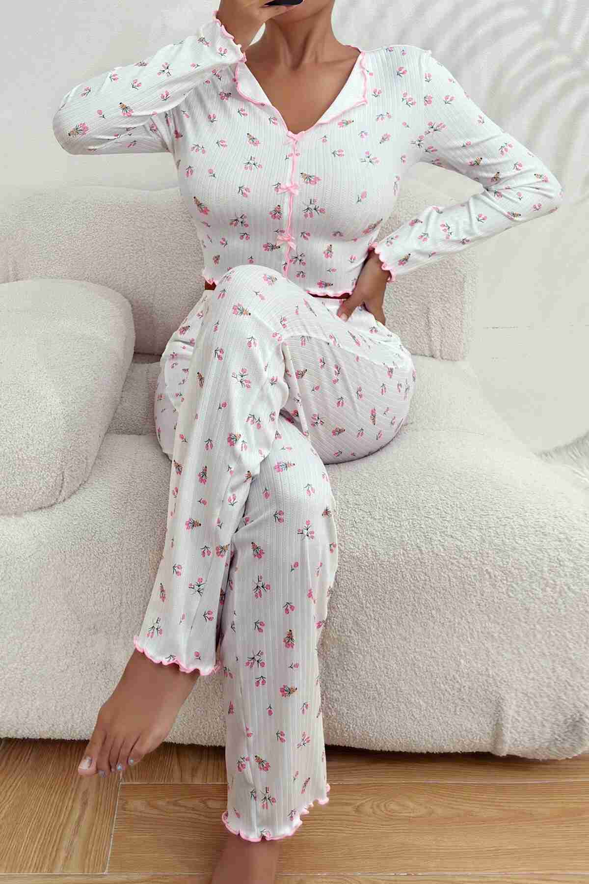 Merry See Baskılı Özel Kumaş Pijama Takımı Beyaz - MS4006-Beyaz