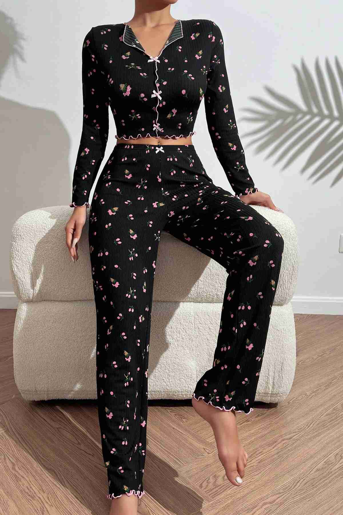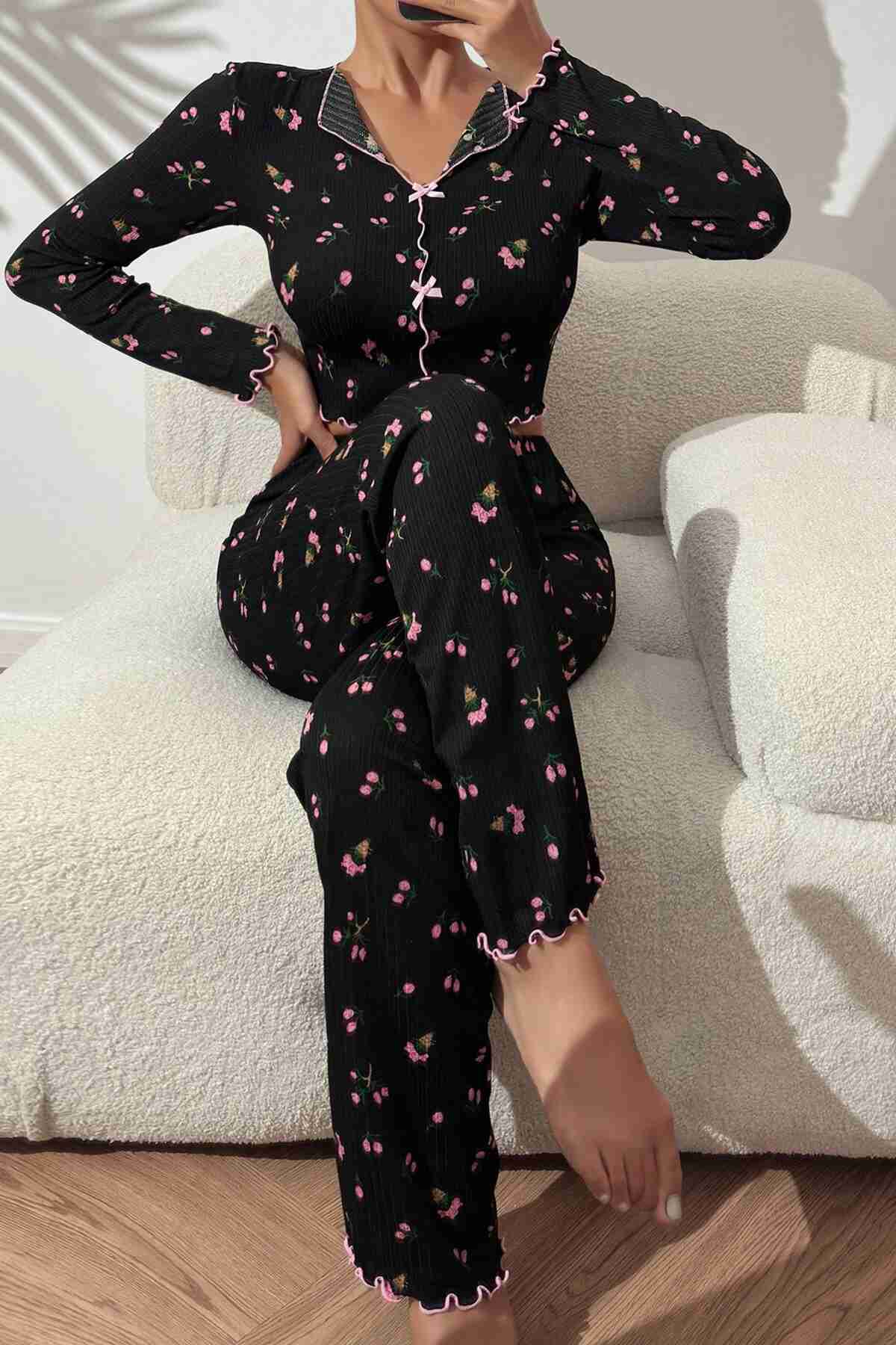 Merry See Baskılı Özel Kumaş Pijama Takımı Siyah - MS4006-Siyah