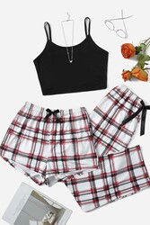 Paket İçeriği : Ürün 3 parçadan oluşmaktadır. (Uzun Alt Pijama, Üst Crop, Sort) 90% Polyester %10 Elastan
