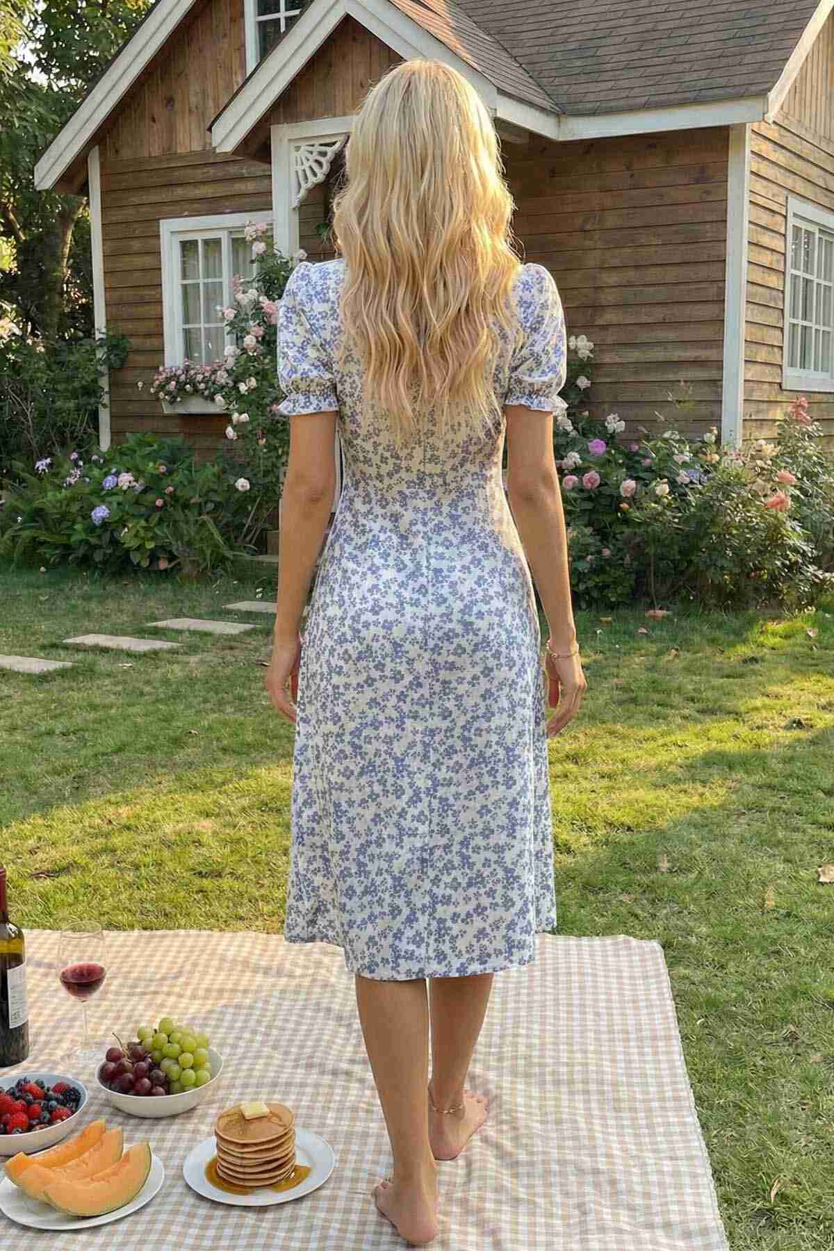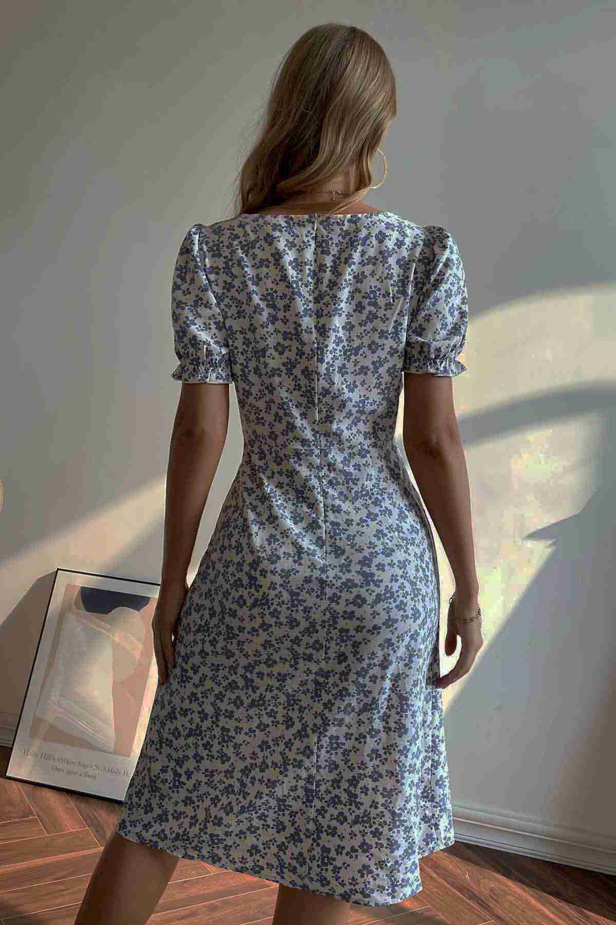 Merry See Çiçek Desenli Yırtmaçlı Diz Altı Elbise Çok Renkli - MS2949-Çok Renkli
