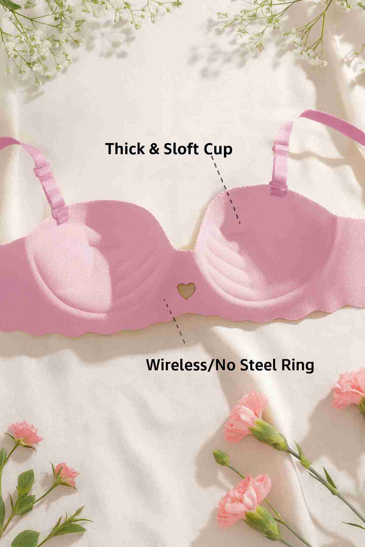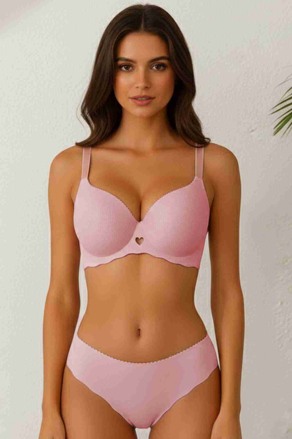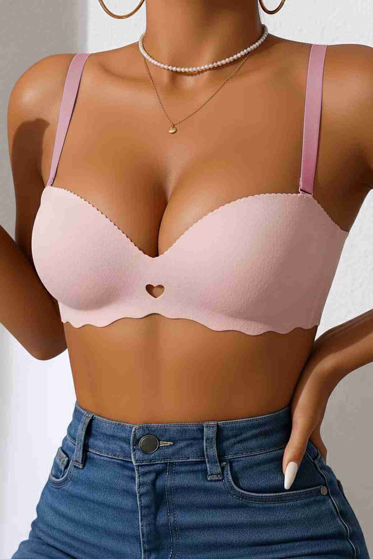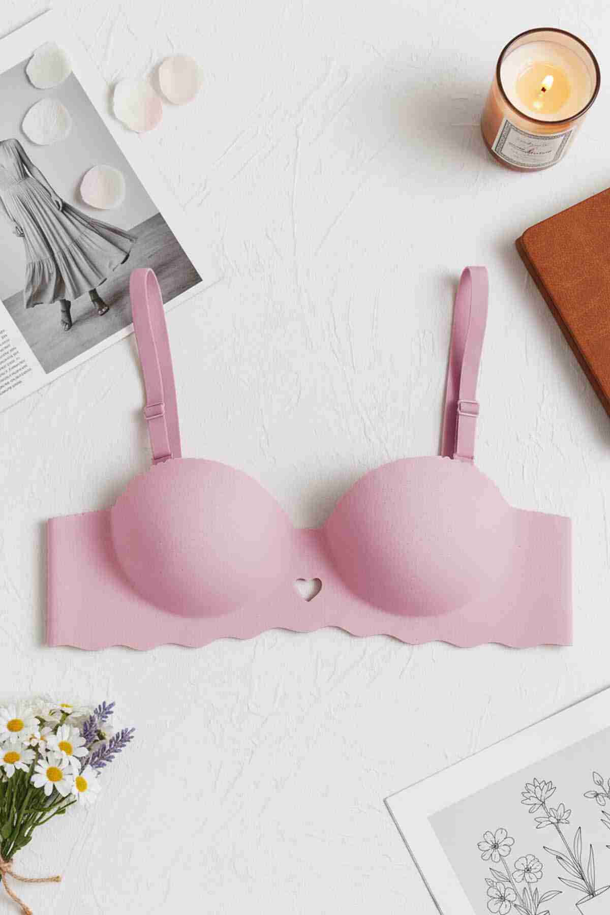 Merry See Dikişsiz Balensiz Hafif Destekli Kalp Detay Lazer Kesim İzbırakmaz Görünmez Sütyen Pembe - MSB9975-Pembe