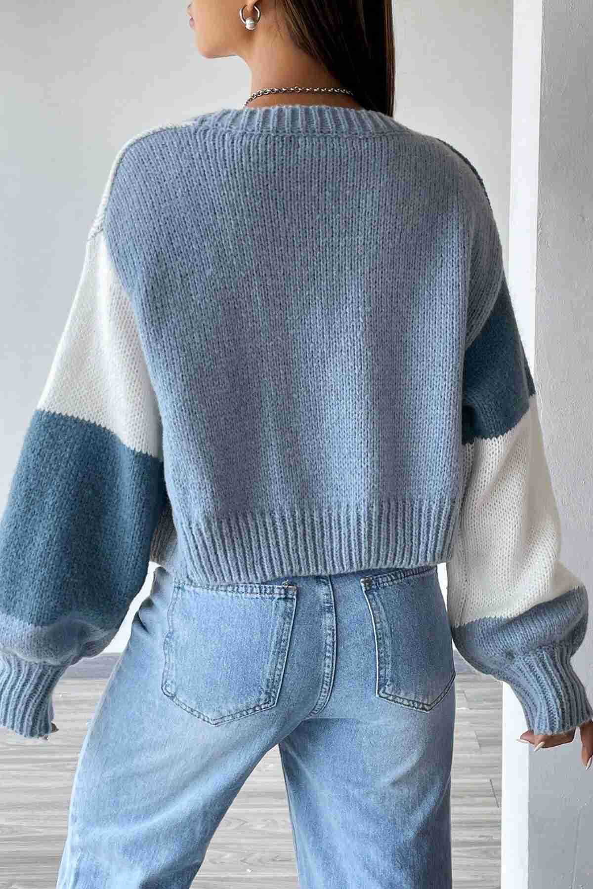 Merry See Düşük Omuzlu Yumuşak Dokulu Salaş Triko Hırka Çok Renkli - MS4418-Çok Renkli