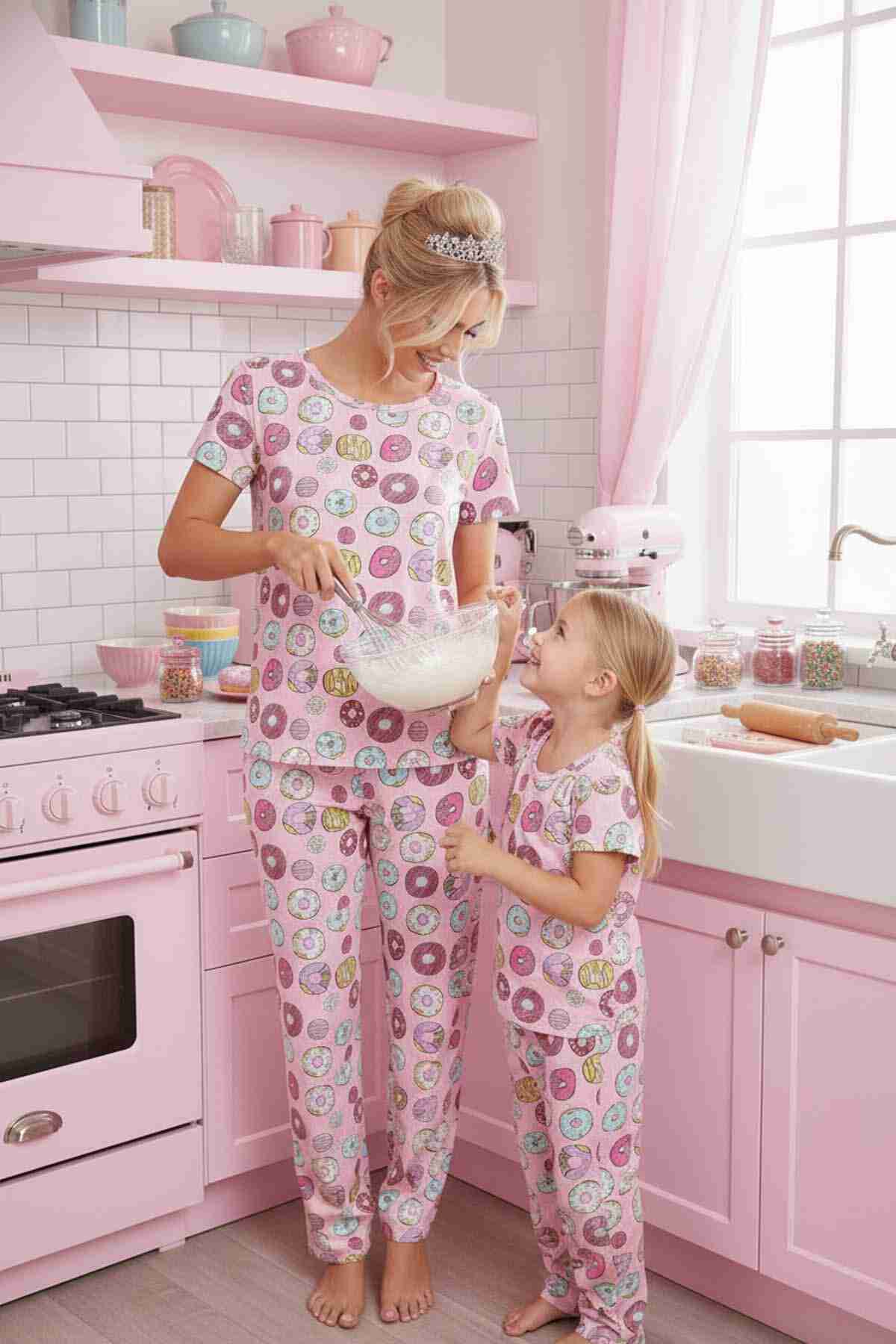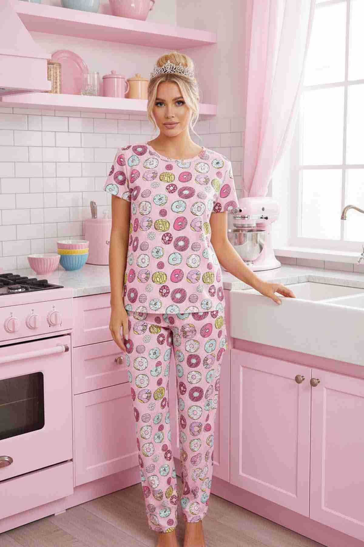 Merry See Kısa Kollu Alt Uzun Donut Baskılı Pijama Takımı Çok Renkli - MS4068-Çok Renkli