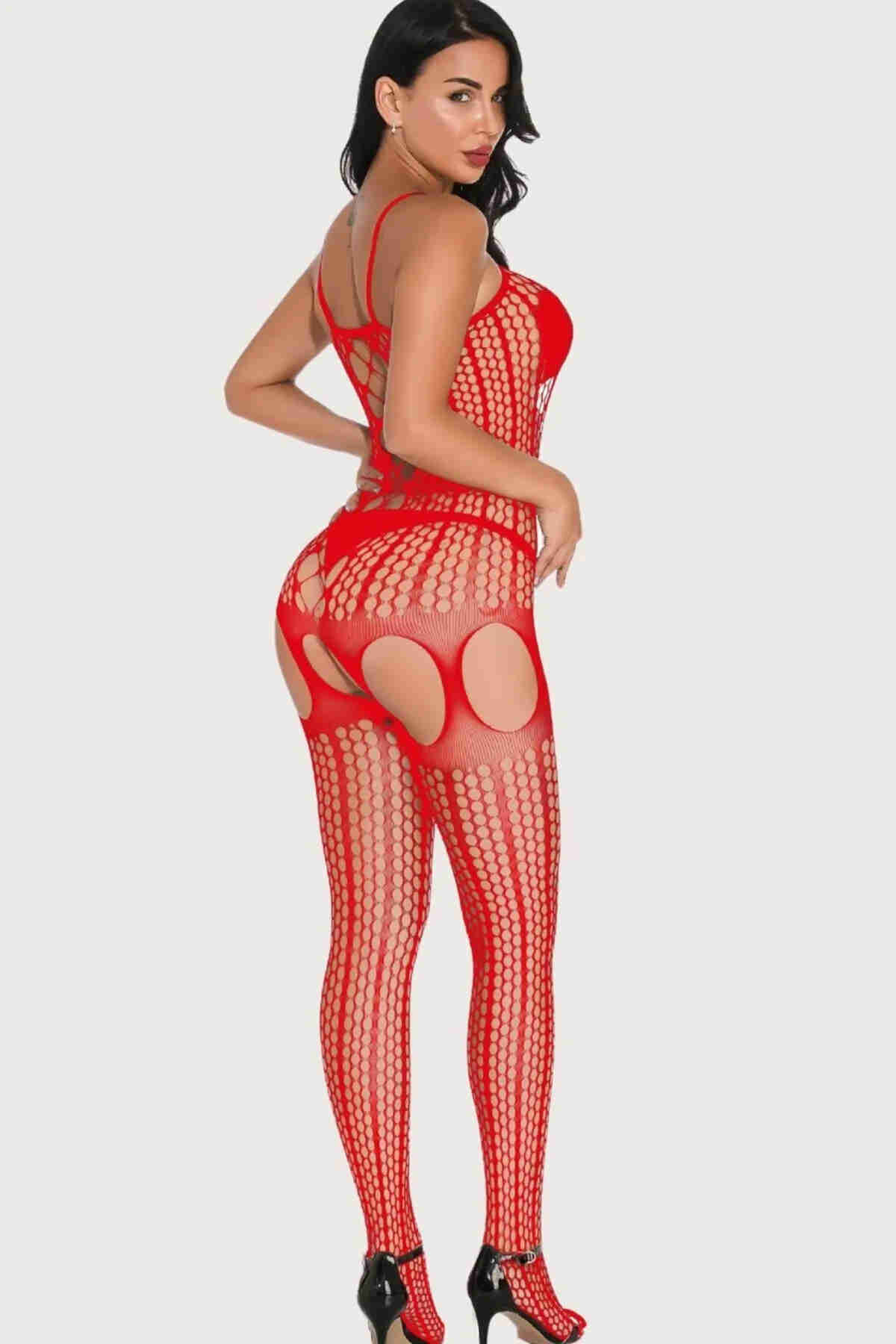 Merry See Özel Bölgesi Açık Jartiyer Görünümlü File Vücut Çorabı Kırmızı - MS79445-Kırmızı