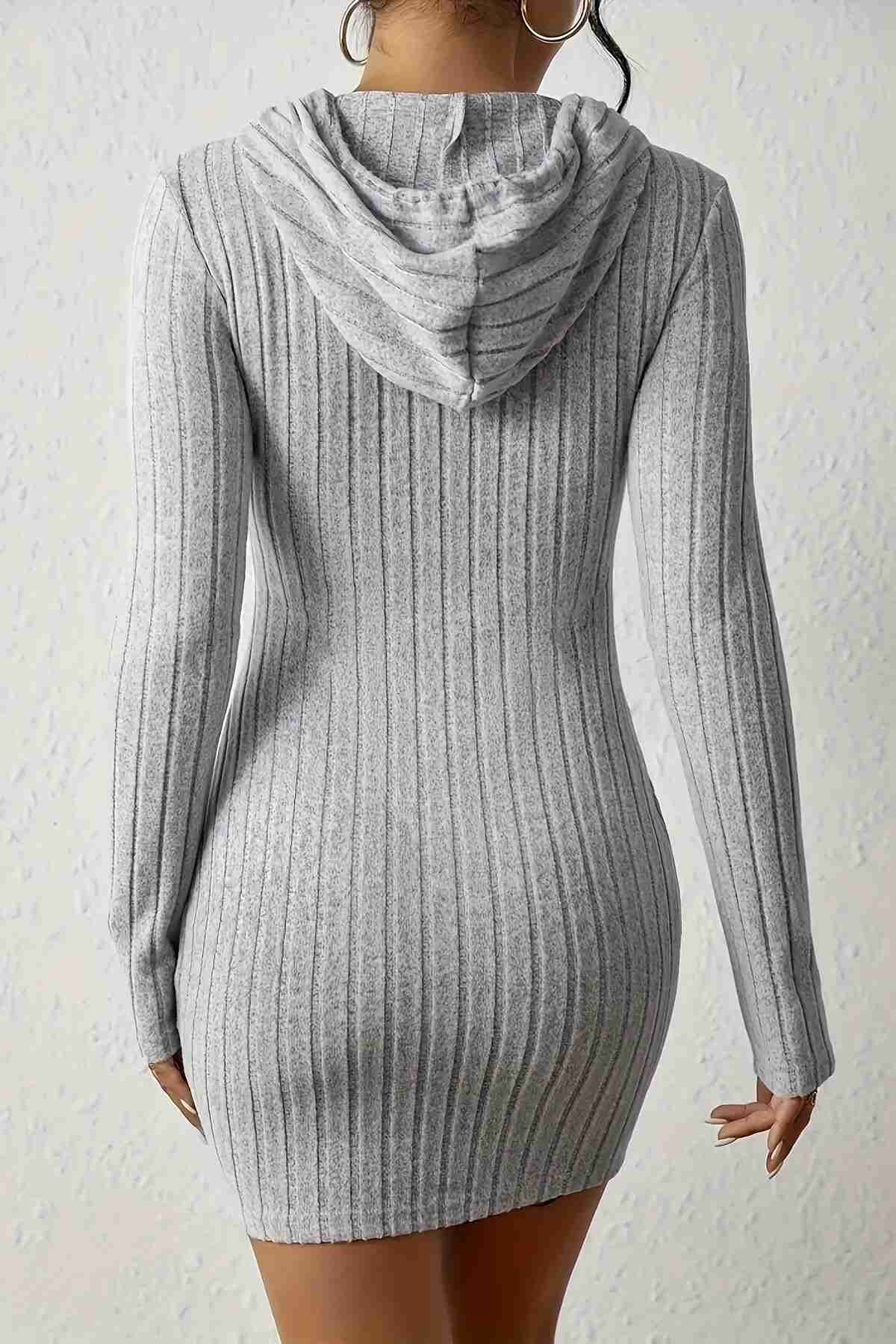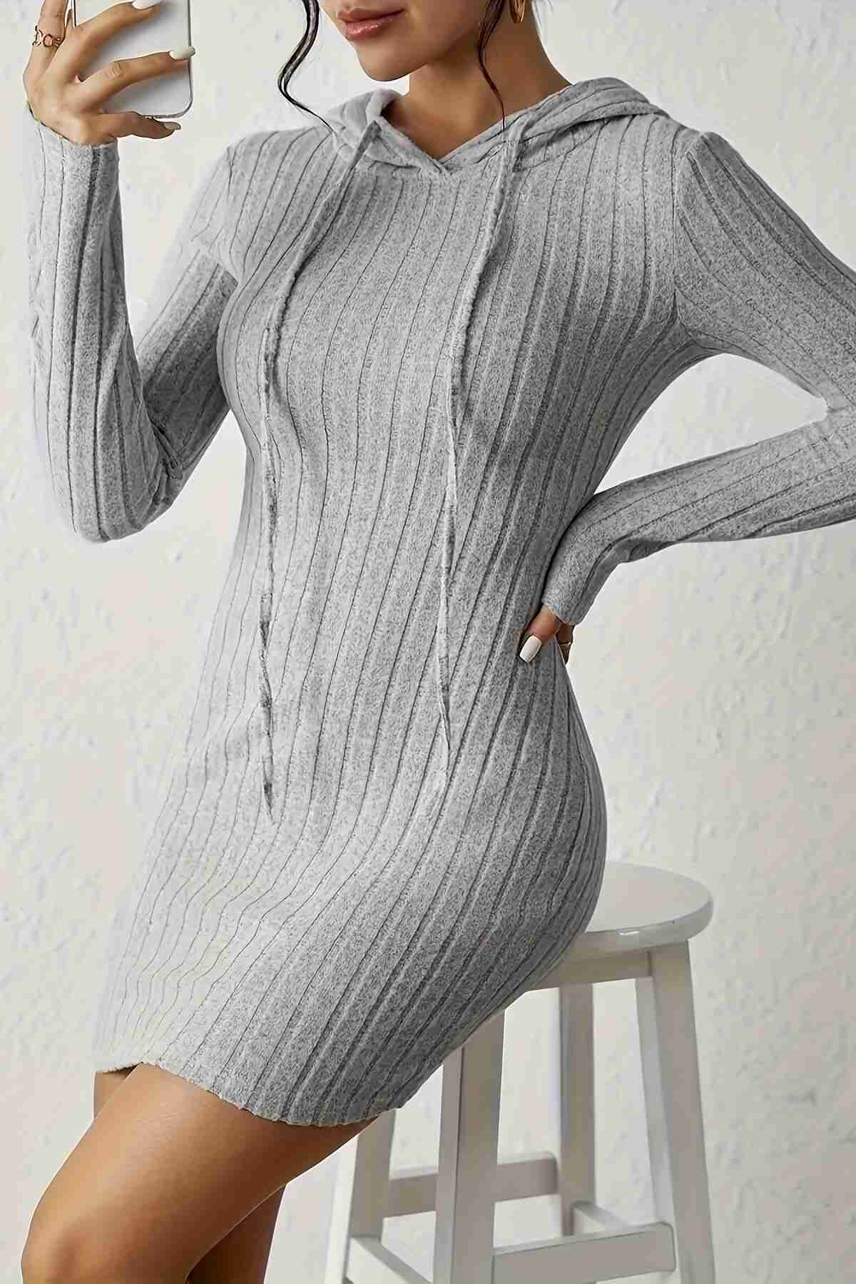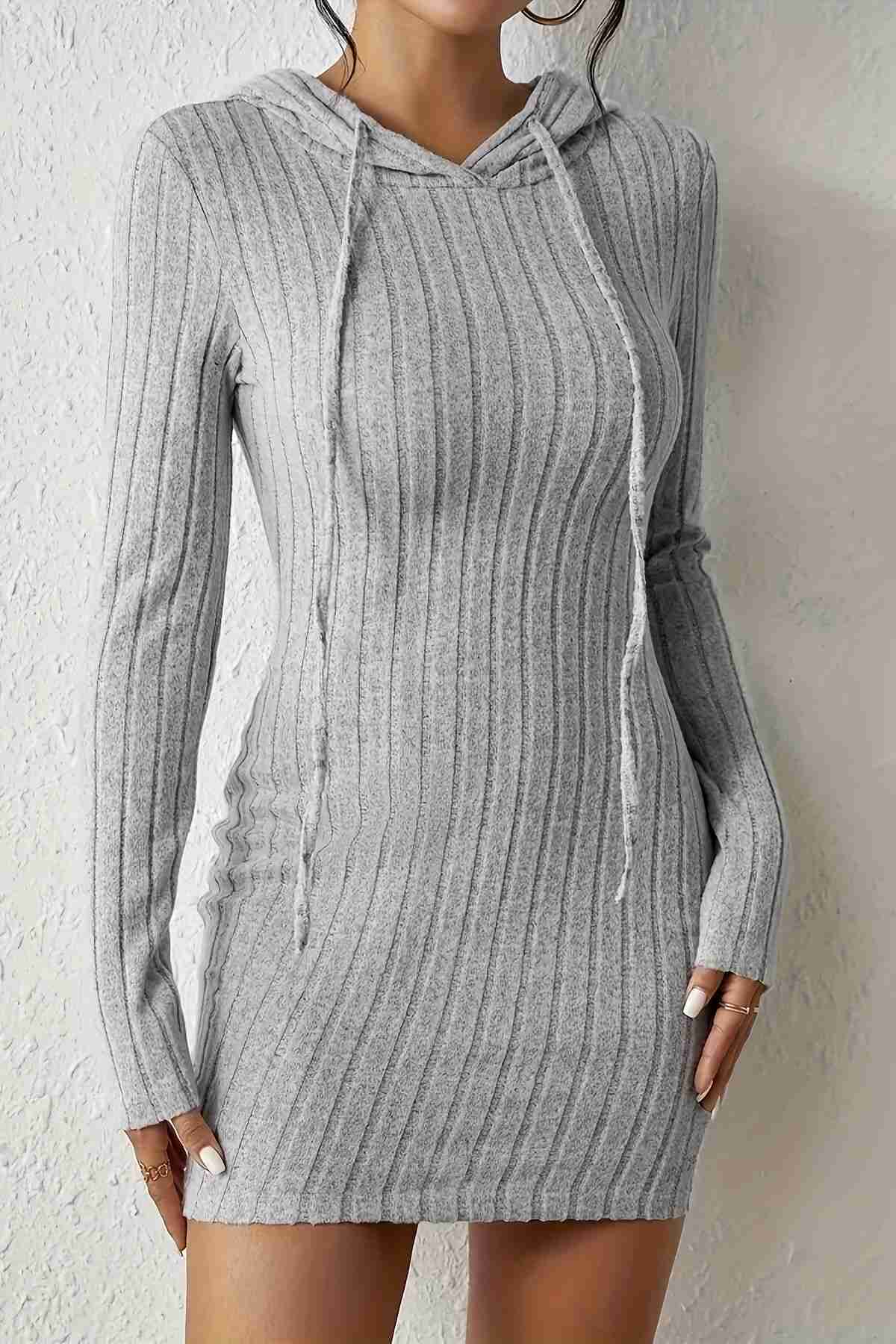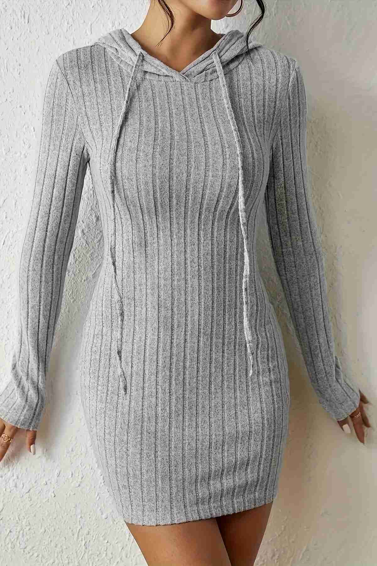 Merry See Uzun Kollu Kapşonlu Mini Elbise Gri - MS3801-Gri